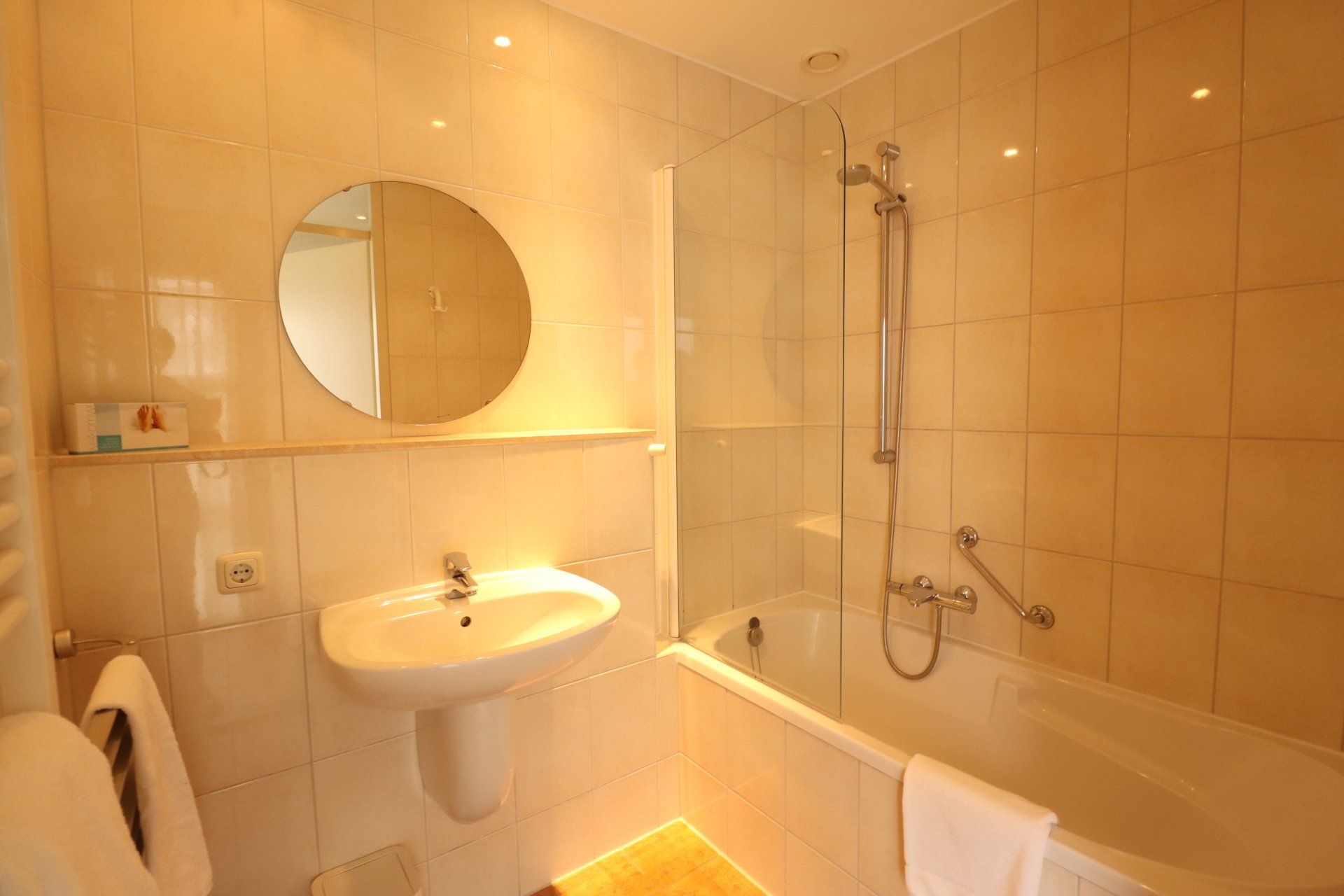 - badkamer met ligbad, wastafel en föhn